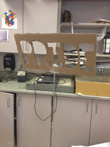 The Idea: Our idea is to write PRIDE in the courtyard with chalk in black and yellow, school colors. At first we came up with a bunch of other words and phrases, like Come Together and Enchilada, but we decided on Pride since it would go with the school and was much shorter. We ran into some problems when the janitor wouldn't let us use the chalk under the overhang and on the ground, so we had to regroup and change the materials that we're going to use. Now instead of chalk we're going to do it in colored duct tape to match the school colors.